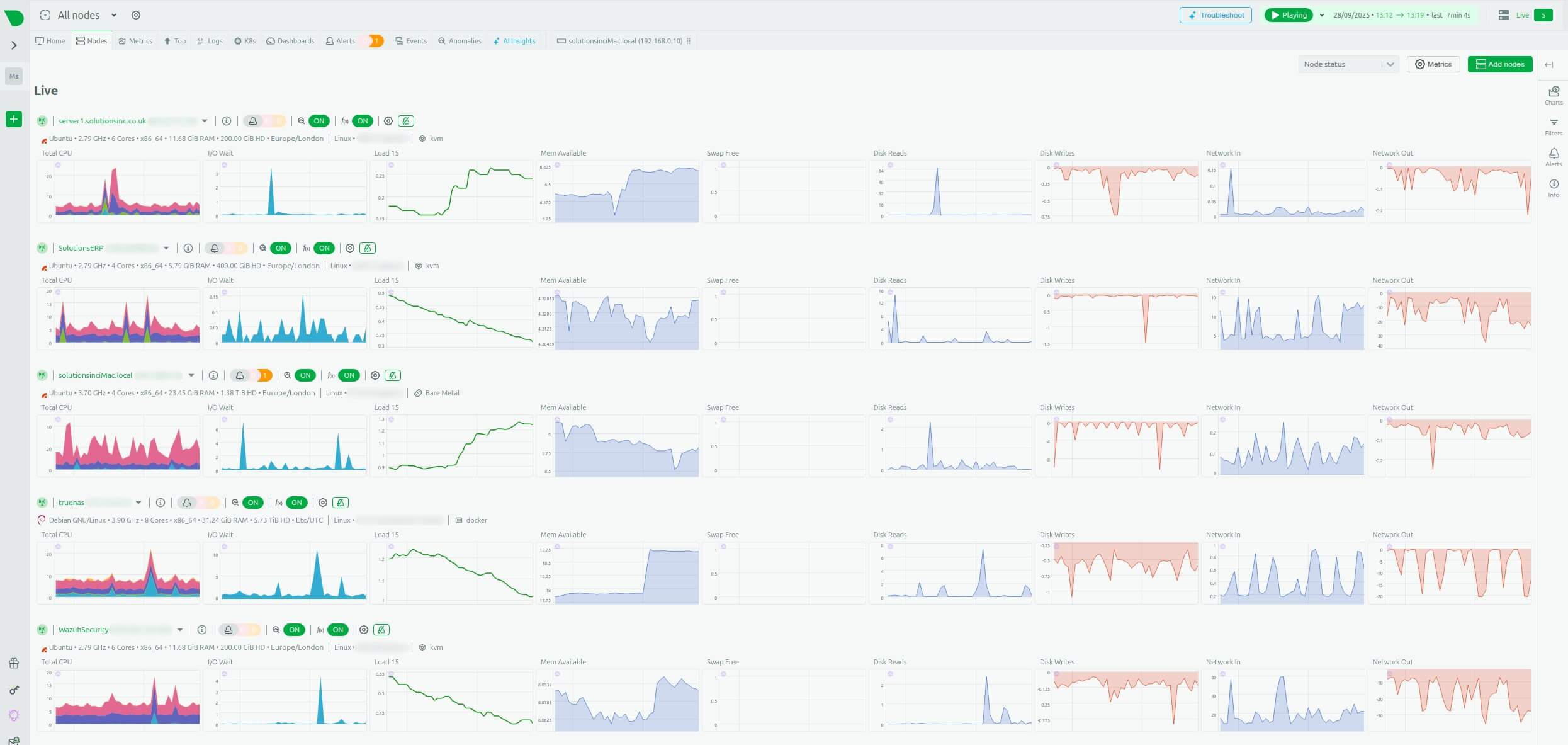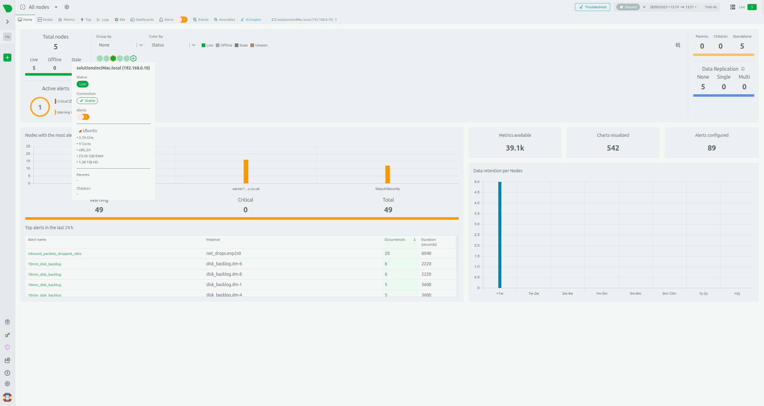This decentralisation of collection and centralisation of storage allows for the maintenance of high performance at the edge (e.g., on resource-limited VPSs) while ensuring a secure and long data history on a dedicated central node. This provides a consolidated, live view of the entire server fleet.